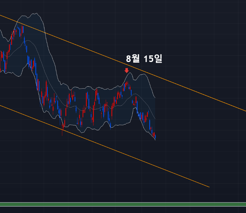 이 과정에서 차트에 표시된것 처럼 채널이 형성되었고 그 채널을 따라 하락중에 있습니다.